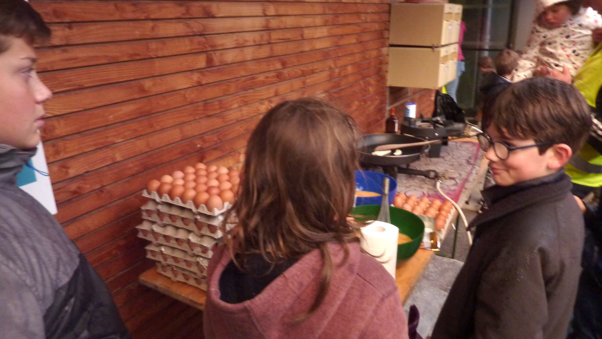 Tous ont dégusté les omelettes confectionnées avec 330 œufs, salées sucrées, plus des œufs en chocolat en fin de repas.