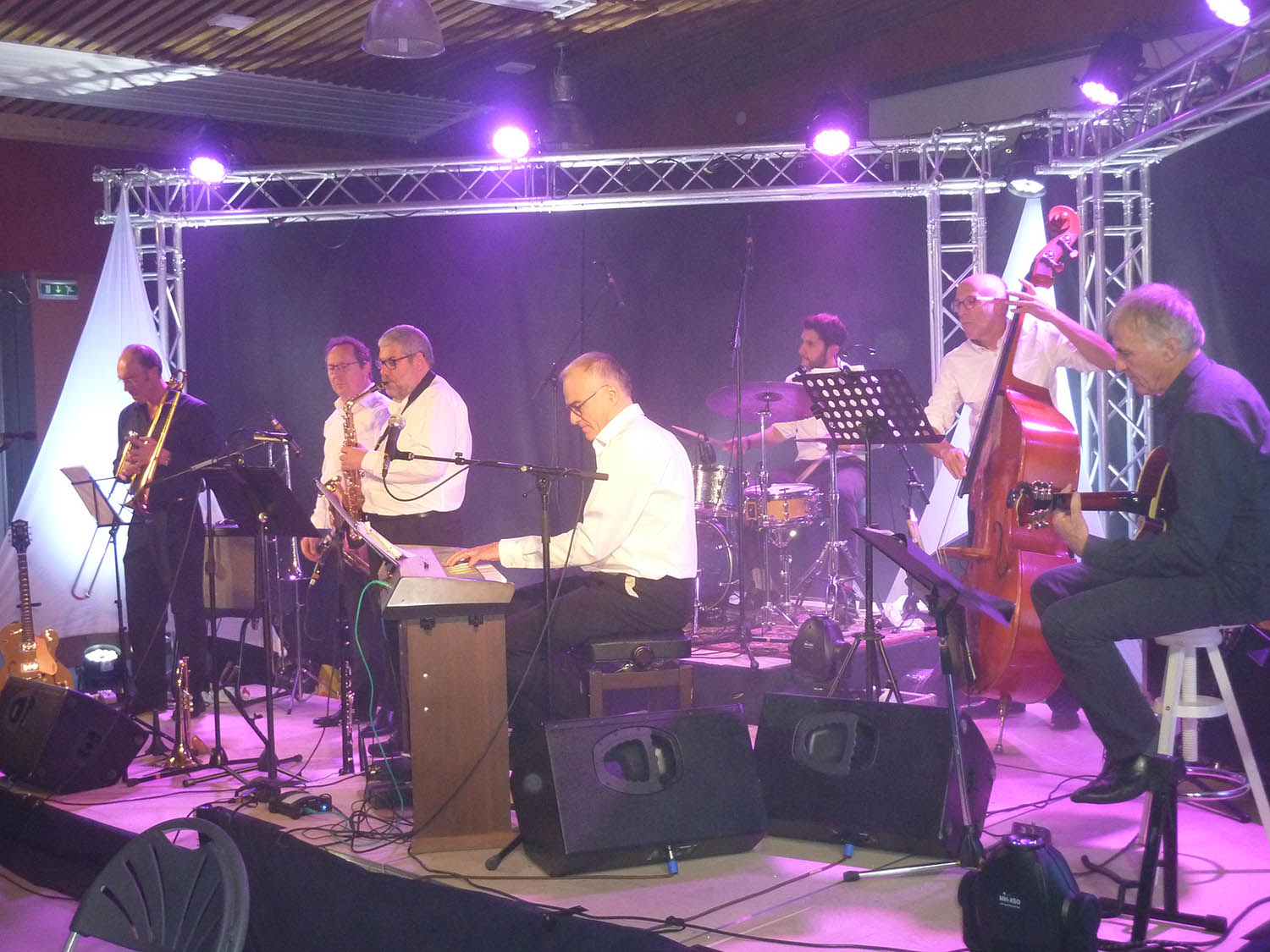 Dans la salle de la Maison des associations, samedi 24/11/2018, la soirée cabaret a connu un franc succès. Plus de cent participants se sont retrouvés autour des tables, pour partager un repas dans une ambiance musicale, assurée par le groupe Séneçon, dirigé par Frédéric Grolet. Sur scène, l’expérience de cette formation composée de sept musiciens a transporté le public, avec un programme d’une très grande qualité. Des couleurs sonores ont jailli avec de belles envolées de rythmes et de mots influencés par Paolo Conte. Le tout, savamment mis en valeur par un jeu de lumière sobre mais efficace, par Techni’ Scène. Indéniablement, une soirée simple et détendue.