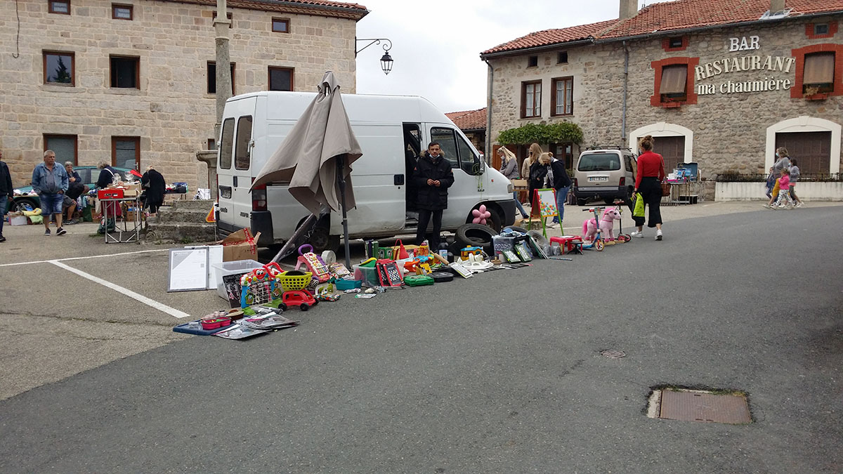 Le vide grenier s’est déroulé ce dimanche 29  août 2021 à Chambles, malgré un petit matin frisquet, 70 exposants étaient présents dans le bourg, sur le parking et le pré du Fangeat.
